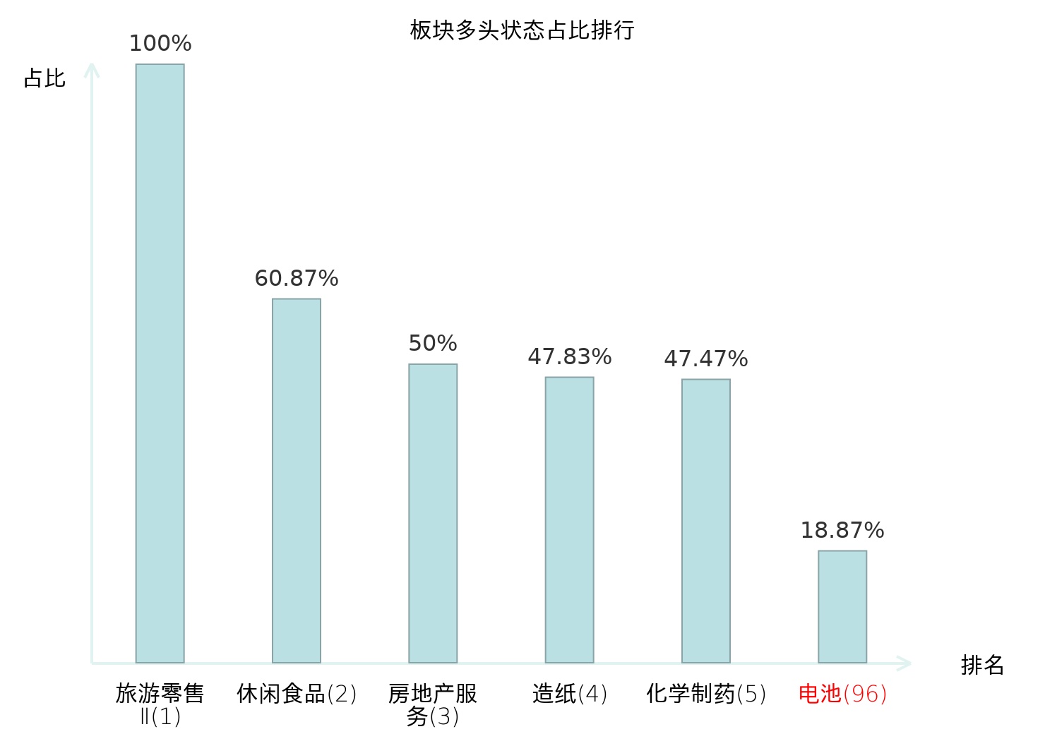 从主力宝信号数据分析,科恒股份所属的电池板块中有20只股票处于主力多头状态,主力多头状态占比在全行业中排名第96位,较昨日上升4位。较高的排名反映出主力对于该板块的看多意愿较强,此次排名上升表明主力对该板块的信心有所增强。全市场所有行业板块中,旅游零售Ⅱ板块的主力多头状态占比最高,位居第一;种植业板块的名次提升最快,较昨日上升49位。这些数据的变化揭示了不同行业板块间主力资金动向的调整,为投资者提供了关于市场趋势和主力态度的重要参考。
