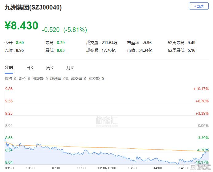 九洲集团:下跌5.81%,换手率40.91%,成交量211.64万手,成交额17.7亿元。主力资金净流出1.78亿元,占总成交额10.04%,游资资金净流入9473.21万元,散户资金净流入8294.89万元。