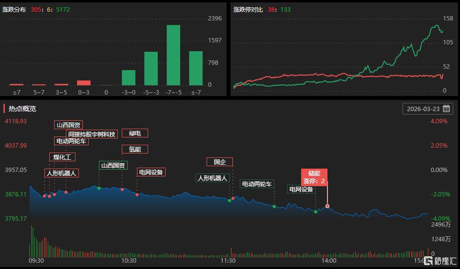 3月23日,A股主要指数重挫。全市场成交额2.45万亿元,较前一交易日增量1453亿元。