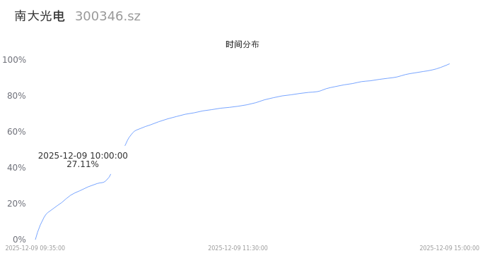 300346南大光电2025年12月09日成交58.23万手,成交金额24.55亿,相较昨日放量9.14万手,换手率8.87%,成交清淡。
