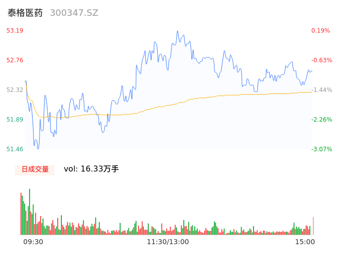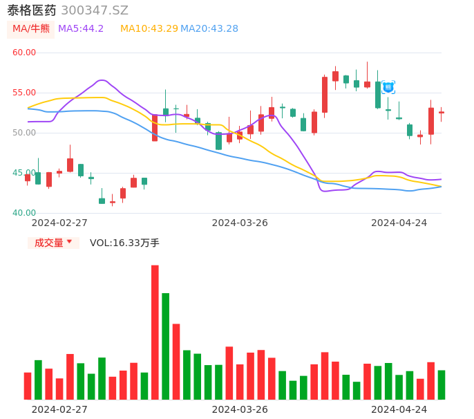04月24日,泰格医药收报52.60,股价涨幅-0.92%,成交金额8.54亿元,换手率2.83%。