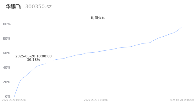 300350华鹏飞2025年05月20日成交45.48万手,成交金额2.83亿,相较昨日缩量1.75万手,换手率9.64%,成交清淡。