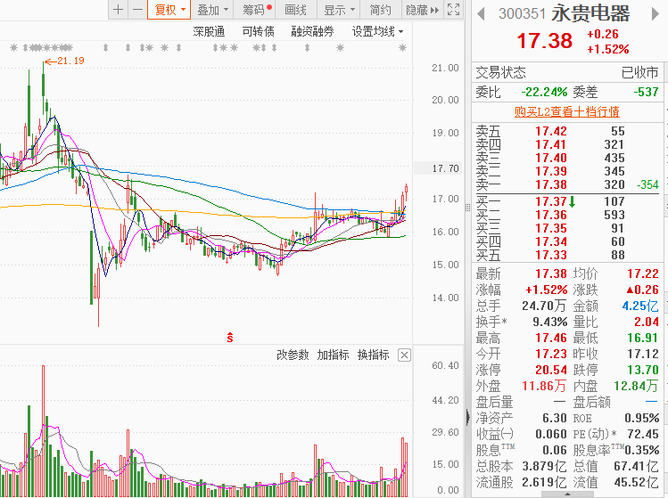 永贵电器液冷高压充电桩,交运设备连接器的核心概念股,近1年股价横盘震荡为主,底部有强支撑13.3元附近),近期股价快速震荡上行且放量数倍的成交额,各周期均线呈多头排列向上,股价站稳在各均线之上,技术面上金叉信号(5日MACD和10日MACD)已显现,股价有望进入上升通道。当前股价和估值对比业绩预期仍处于低估区间,市值60多亿左右易炒作,深受游资和主力的喜爱,后市增长空间巨大。