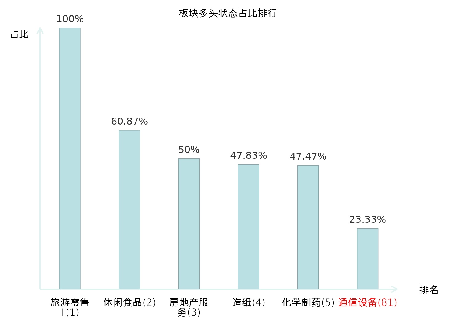从主力宝信号数据分析,东土科技所属的通信设备板块中共21只股票处于主力多头状态,主力多头状态占比在全行业中排名第81位,较昨日下降4位。排名的下降可能反映了主力对该板块态度的微妙调整,但仍处于较高水平,表明主力总体上仍对板块持积极态度。全市场所有行业板块中主力多头状态占比排名中,旅游零售Ⅱ板块位居第一;种植业板块名次提升最快,较昨日上升49位。这些变动揭示了不同行业间主力资金的偏好变化,为投资者提供了重要的市场情绪参考和潜在投资机会的线索。