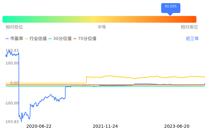 光一退当前市盈率PETTM为-1.32,在所属的电网设备中,市盈率PETTM排103名。前5名分别为特变电工PETTM4.98、长园集团PETTM11.90、柘中股份PETTM11.95、正泰电器PETTM12.55、华通线缆PETTM12.90。从PETTM估值走势数据来看,光一退当前市盈率PETTM为-1.32,超过近3年93.33%的历史数据。