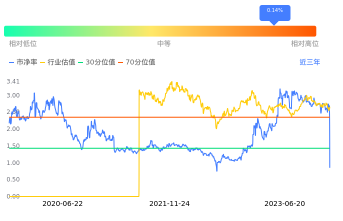 光一退当前市净率PB为0.85,在所属的电网设备中,市净率PB排1,前五名分别为光一退市净率0.85、广电电气市净率1.26、九洲集团市净率1.29、中国西电市净率1.29、众业达市净率1.32。光一退当前市净率PB为0.85,超过近3年0.14%的历史数据。
