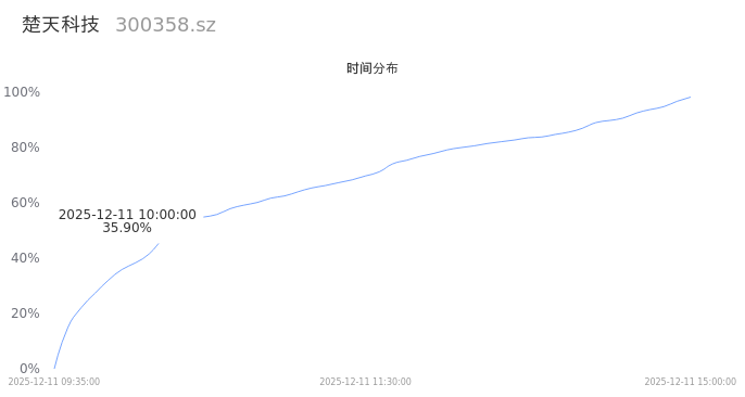 300358楚天科技2025年12月11日成交27.69万手,成交金额2.53亿,相较昨日放量10.95万手,换手率4.15%,成交清淡。