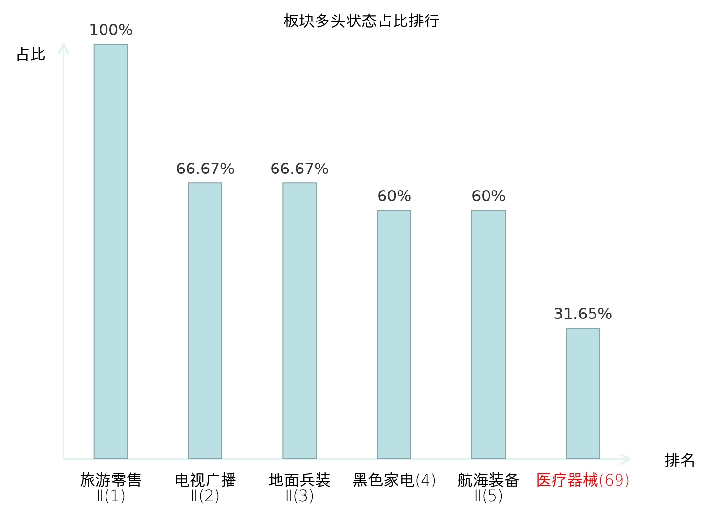 全市场所有行业板块中主力多头状态占比排名中,旅游零售Ⅱ板块位居第一。玻璃玻纤板块名次提升最快,较昨日上升41位。