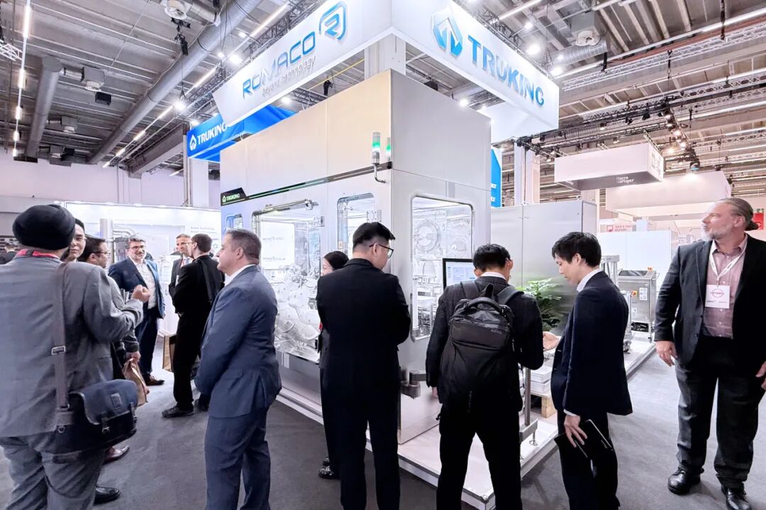 楚天科技展出了预灌封机器人全称重灌装加塞机、实验型冻干机、BFS、实验室超滤系统、自动层析柱、自动填料站、EPC样板项目、陶瓷泵等众多包含领先技术的产品,旗下的德国Romaco集团也共同参展,而且获得了最为优质的展台位置,来自全球的合作伙伴纷纷到访,人气高涨。