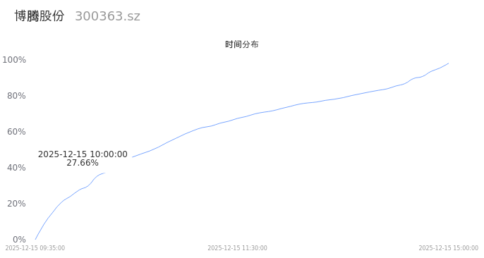 300363博腾股份2025年12月15日成交16.10万手,成交金额3.86亿,相较昨日缩量9.08万手,换手率3.23%,成交清淡。