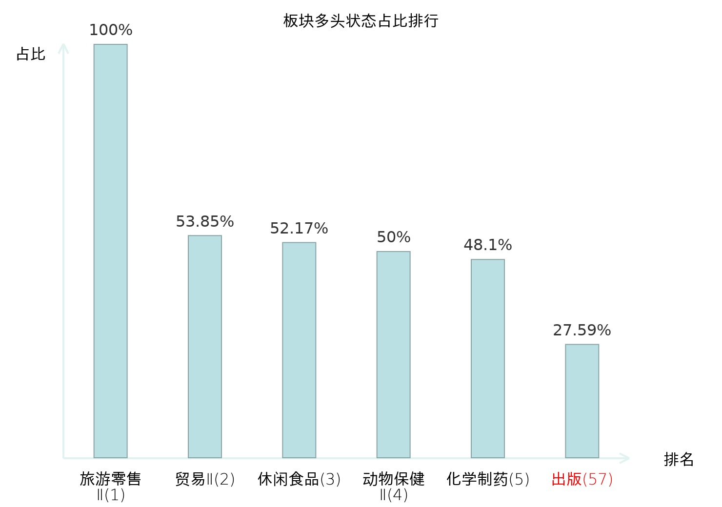 从主力宝信号数据分析,中文在线所属的出版板块中共8只股票处于主力多头状态,主力多头状态占比在全行业中排名第57位,较昨日下降3位。排名较高表明主力对板块整体的看多意愿较强,此次排名下降可能反映了主力对于该板块态度的微调。全市场所有行业板块中,旅游零售Ⅱ板块的主力多头状态占比最高,位居第一;白酒Ⅱ板块名次提升最快,较昨日上升47位。这些变动揭示了主力资金在不同行业间的偏好调整,为投资者提供了重要的市场参考信息。