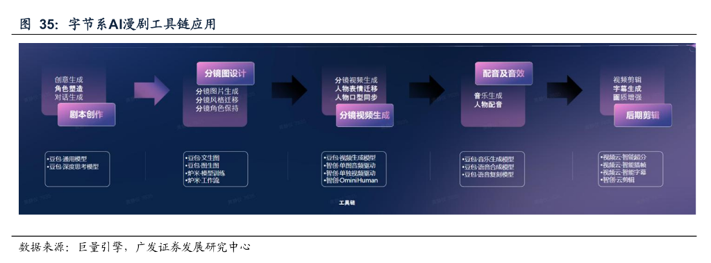 与早期应用于真人短剧特效制作不同,AI技术在漫剧领域能够赋能从剧本改编、分镜设计、图像生成、动态制作到配音的全流程。广发证券报告分析认为,动漫题材线条简洁、对表情动态精度要求较低的特性,使其成为当前AI生成内容最合适的应用场景。