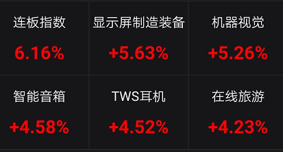 从盘面上看,当天上午,显示屏指数、智能音箱、机器视觉、TWS耳机等相关概念题材领涨两市。