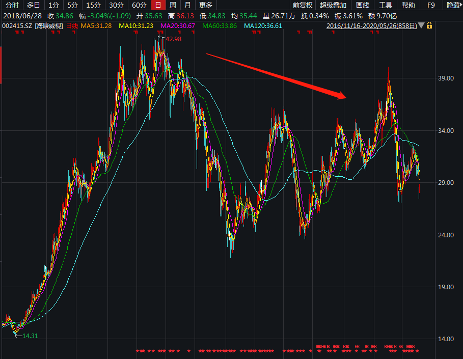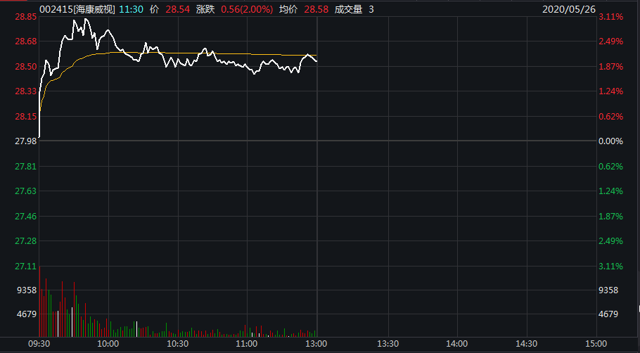 5月25日,因股东减持计划,2600亿市值白马股海康威视大跌6.61%,市值一天蒸发185亿元。5月26日,海康威视早盘高开低走,涨幅也从一度涨超3%逐步缩窄。截至当日午盘收盘,海康威视涨2%。
