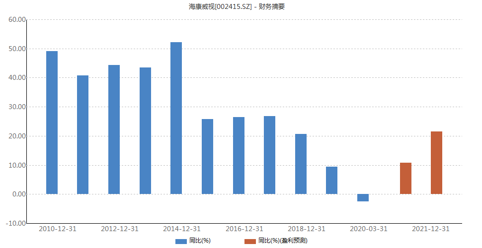 另一方面,海康威视自身业绩发力,股东减持计划更是打击市场信心。据财报数据显示,2019年海康威视实现营业收入576.58亿元,同比增长15.69%;实现归母净利润124.15亿元,同比增长9.36%。不过,从近十年数据来看,2019年海康威视营收和归母净利润增速均为近十年低点,且近年来业绩增速呈波动走低态势。