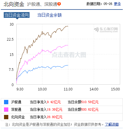 当天上午,北上资金持续扫货,短短半日,净流入超28亿元。这也是上周出现净流出迹象后,北上资金重新转头,连续两日加仓A股筹码的动作。