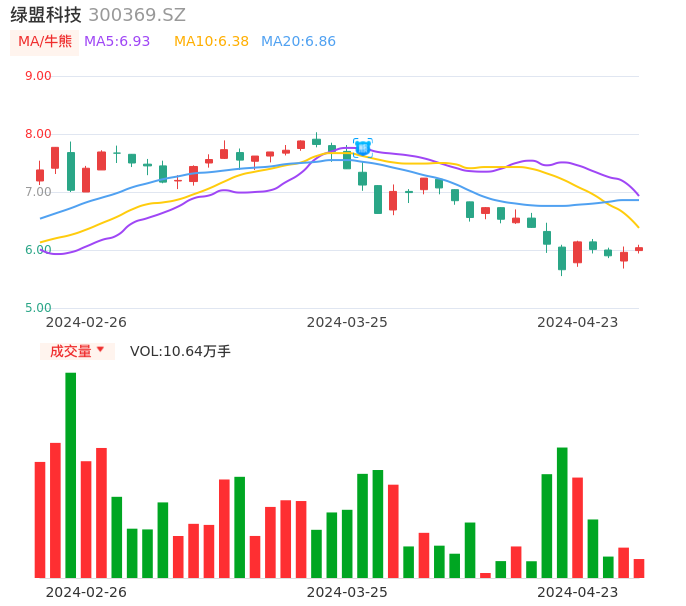 04月23日,绿盟科技收报6.04,股价涨幅1.34%,成交金额6410.85万元,换手率1.33%。