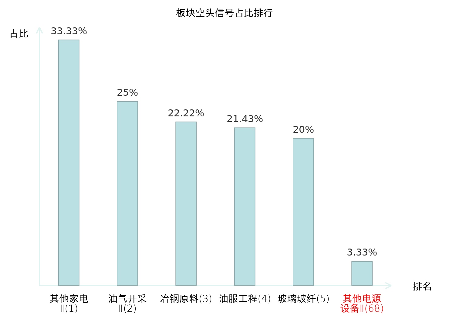 全市场所有行业板块中主力空头信号占比排名中,其他家电Ⅱ板块位居第一。铁路公路板块名次提升最快,较昨日上升113位。