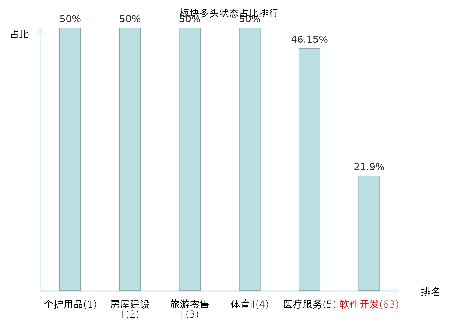 全市场所有行业板块中主力多头状态占比排名中,个护用品板块位居第一。影视院线板块名次提升最快,较昨日上升56位。