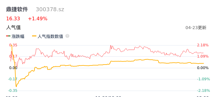 04月23日,鼎捷软件收报16.33,股价涨幅1.49%,成交金额8142.96万元,换手率1.87%。