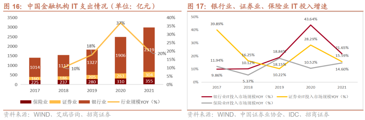 从银行、证券、保险细分行业来看,银行IT支出规模最大,增速最高。结构上来看,国有大行和大型股份行占据主导,率先发力,高举高打,在IT支出规模和增速上引领金融行业。