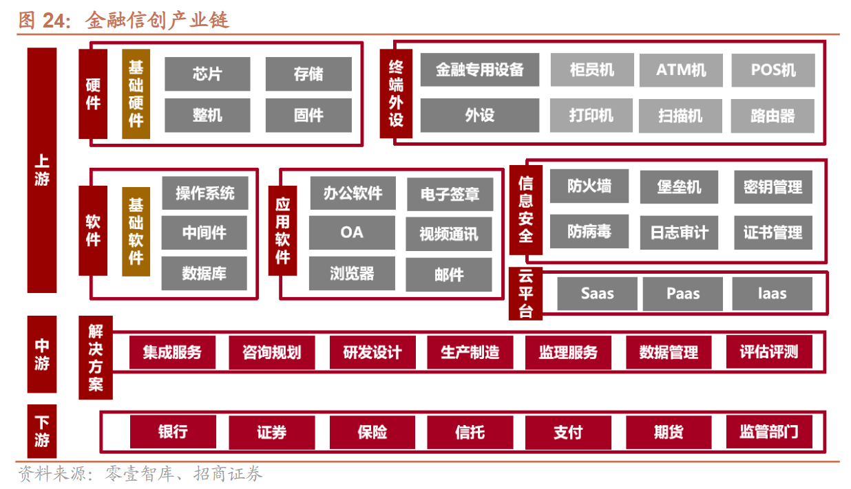 郑积沙表示,金融信创从基础软硬件到金融业务应用分层级推进,随着金融机构基础系统和一般性邮件、OA等应用国产化替代的完成,金融信创的重心将逐步迁移到核心系统和外围相关业务系统。此类业务具有投入大、专业化强、壁垒高、耗时长等一系列特点,大量的开发、测试、运维等科创适配工作为金融IT厂商带来高增长契机。随着金融信创逐步在业务层深化,行业高景气有望长期持续。