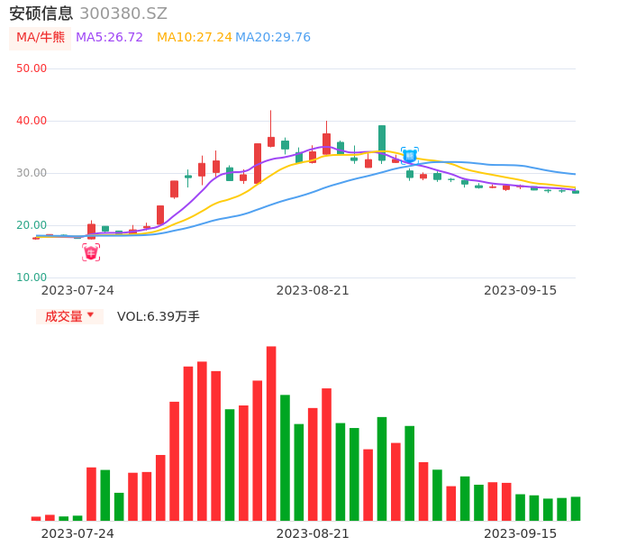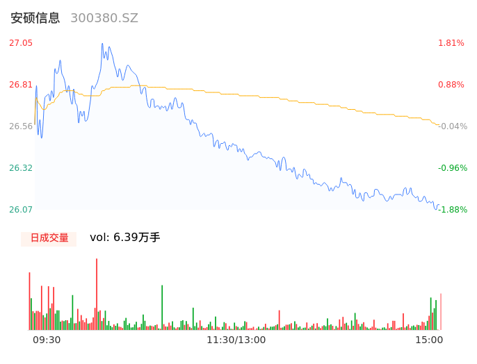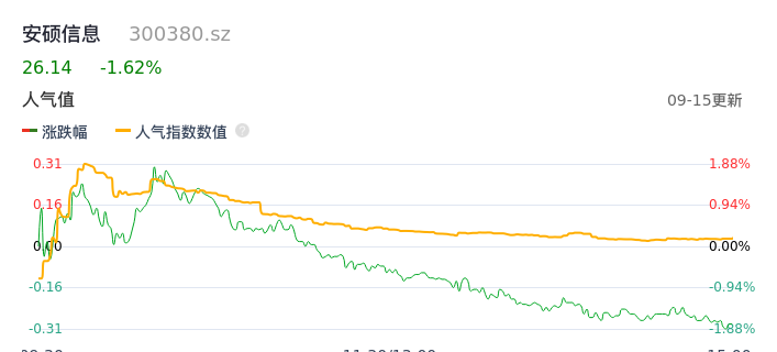 09月15日,安硕信息收报26.14,股价涨幅-1.62%,成交金额1.70亿元,换手率5.13%。