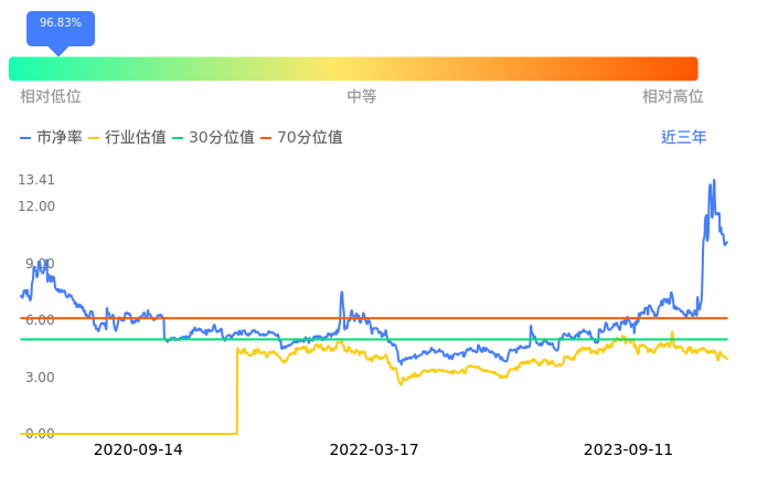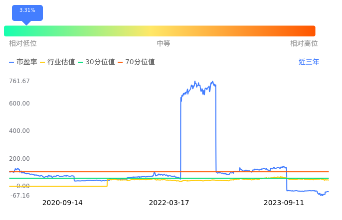2023年09月12日,安硕信息下跌2.90%收于26.74,今日成交金额1.83亿元。下文将从市盈率PETTM、市净率PB、市现率3个角度去分析公司估值情况。
