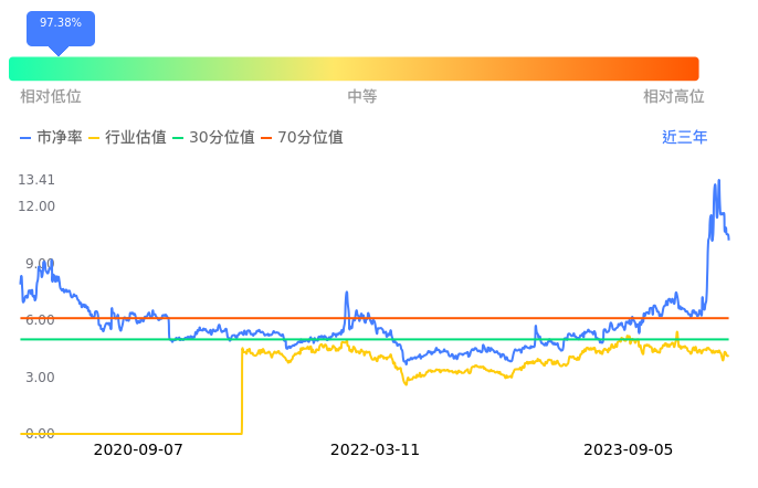 安硕信息当前市净率PB为10.22,在所属的软件开发中,市净率PB排121,前五名分别为中电兴发市净率1.05、天融信市净率1.16、理工能科市净率1.21、天源迪科市净率1.52、高新兴市净率1.97。安硕信息当前市净率PB为10.22,超过近3年97.38%的历史数据。