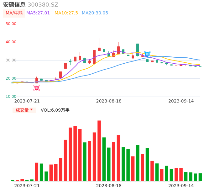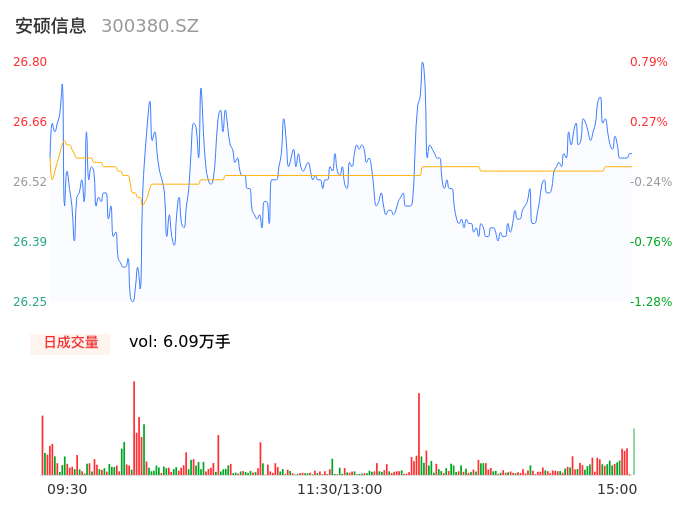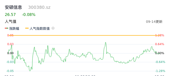 09月14日,安硕信息收报26.57,股价涨幅-0.08%,成交金额1.62亿元,换手率4.89%。