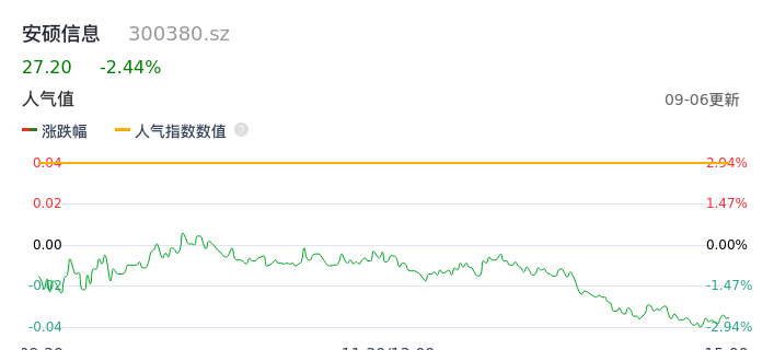 09月06日,安硕信息收报27.20,股价涨幅-2.44%,成交金额2.64亿元,换手率7.72%。