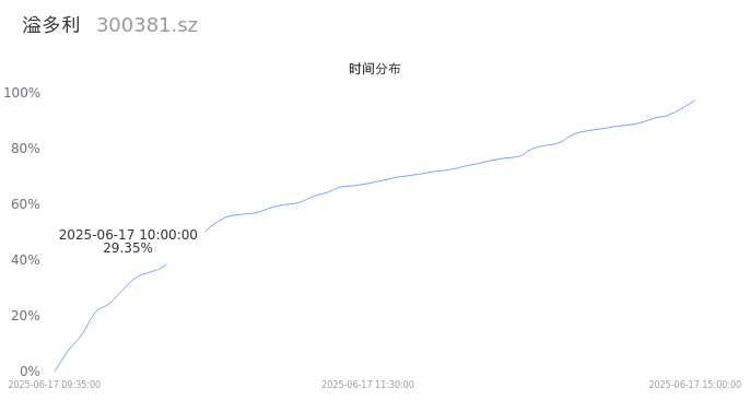 根据成交分布分析,该股票当天放量成交,成交清淡。时间上看,早盘前半小时成交量占据当天总成交量的29.35%;价格上看,成交呈现左偏峰。成交分布分析主要研究股票成交的分布特性,不具有预测功能,请知悉。