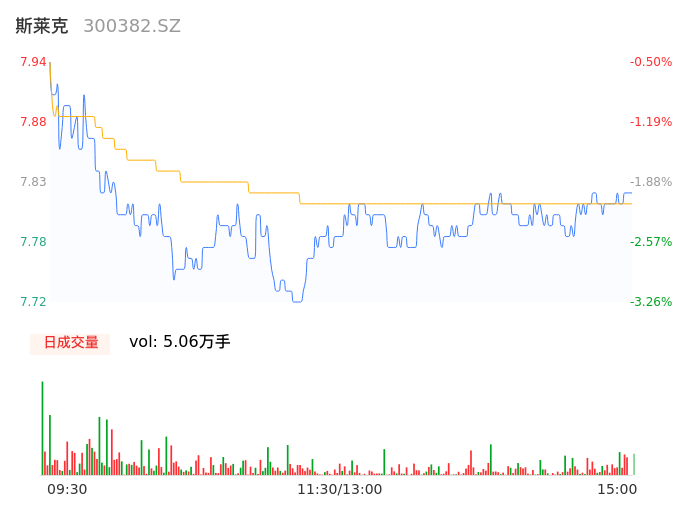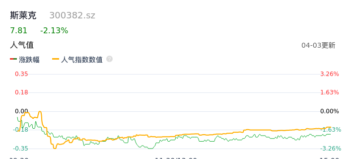 04月03日,斯莱克收报7.81,股价涨幅-2.13%,成交金额3954.57万元,换手率0.81%。