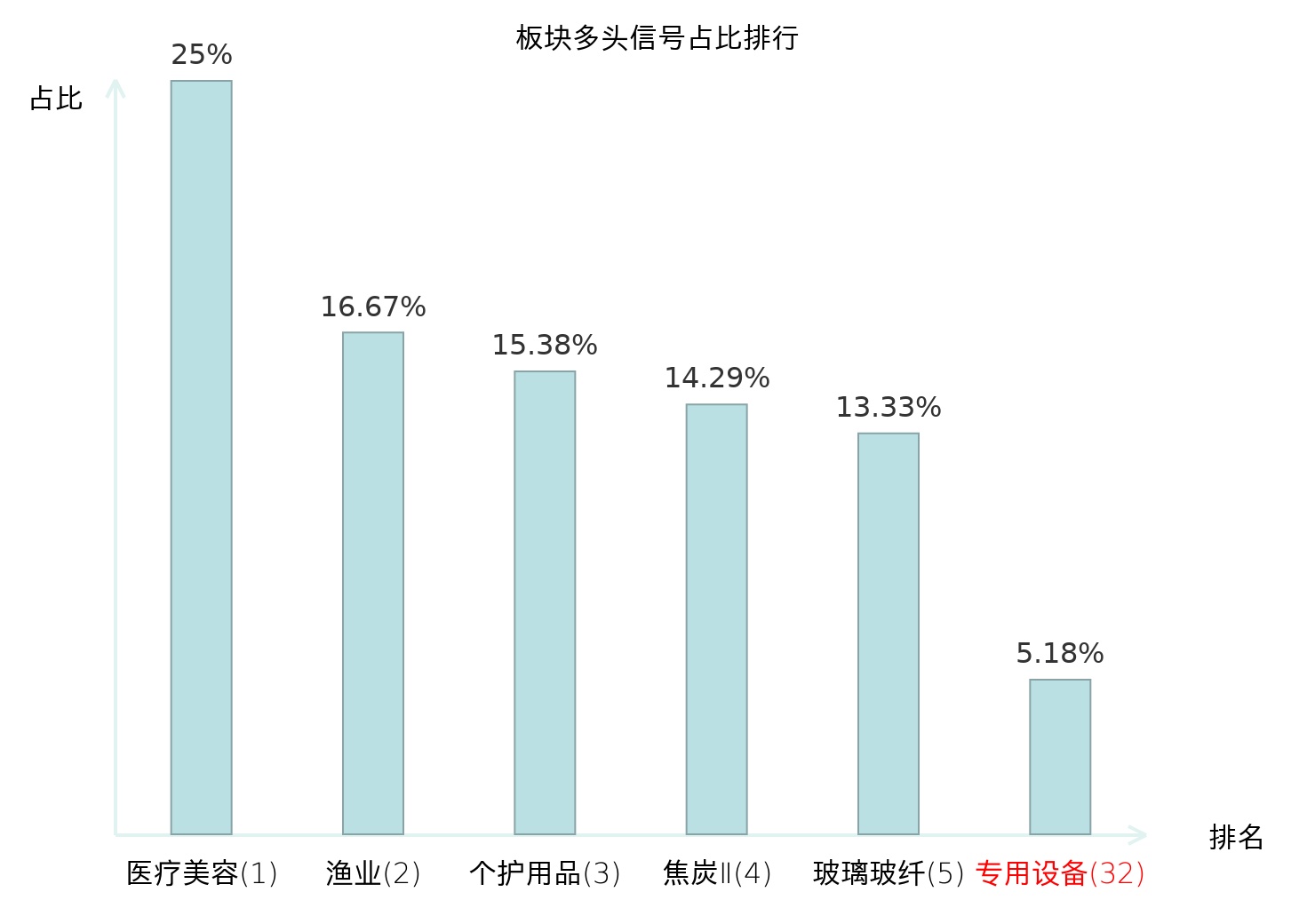 全市场所有行业板块中主力多头信号占比排名中,医疗美容板块位居第一。医疗美容板块名次提升最快,较昨日上升126位。
