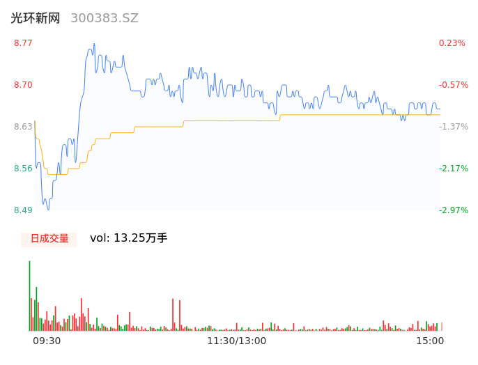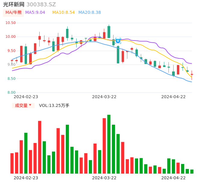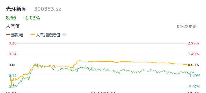 04月22日,光环新网收报8.66,股价涨幅-1.03%,成交金额1.15亿元,换手率0.74%。