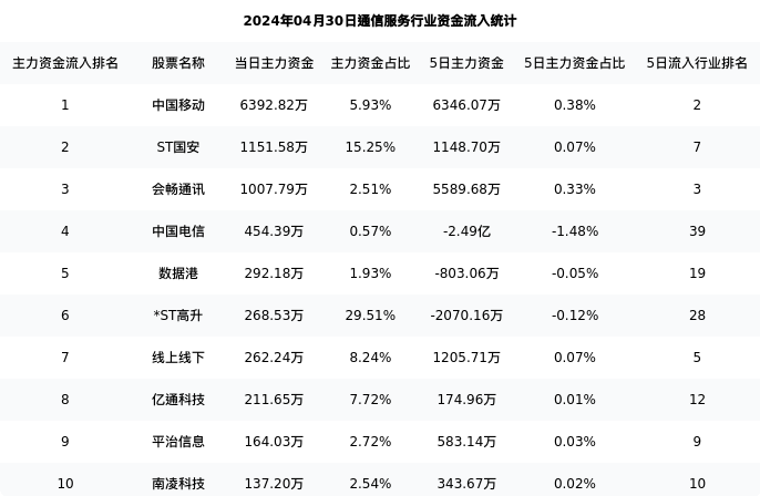 从主力资金流向来看,通信服务行业今日主力资金流入38.21亿元,在所有申万二级行业中排名:78/131。