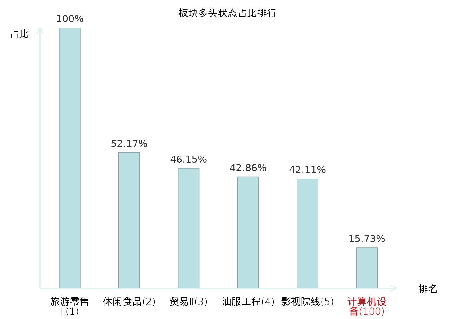 从主力宝信号数据分析,飞天诚信所属的计算机设备板块中共有14只股票处于主力多头状态,主力多头状态占比在全行业中排名第100位,较昨日上升4位。较高的排名表明主力对于该板块整体看多意愿较强,此次排名上升可能反映了主力对该板块态度的积极调整。全市场所有行业板块中主力多头状态占比排名中,旅游零售Ⅱ板块位居第一;体育Ⅱ板块名次提升最快,较昨日上升99位。这些变动揭示了不同行业间主力资金偏好的变化,为投资者提供了重要的参考信息。