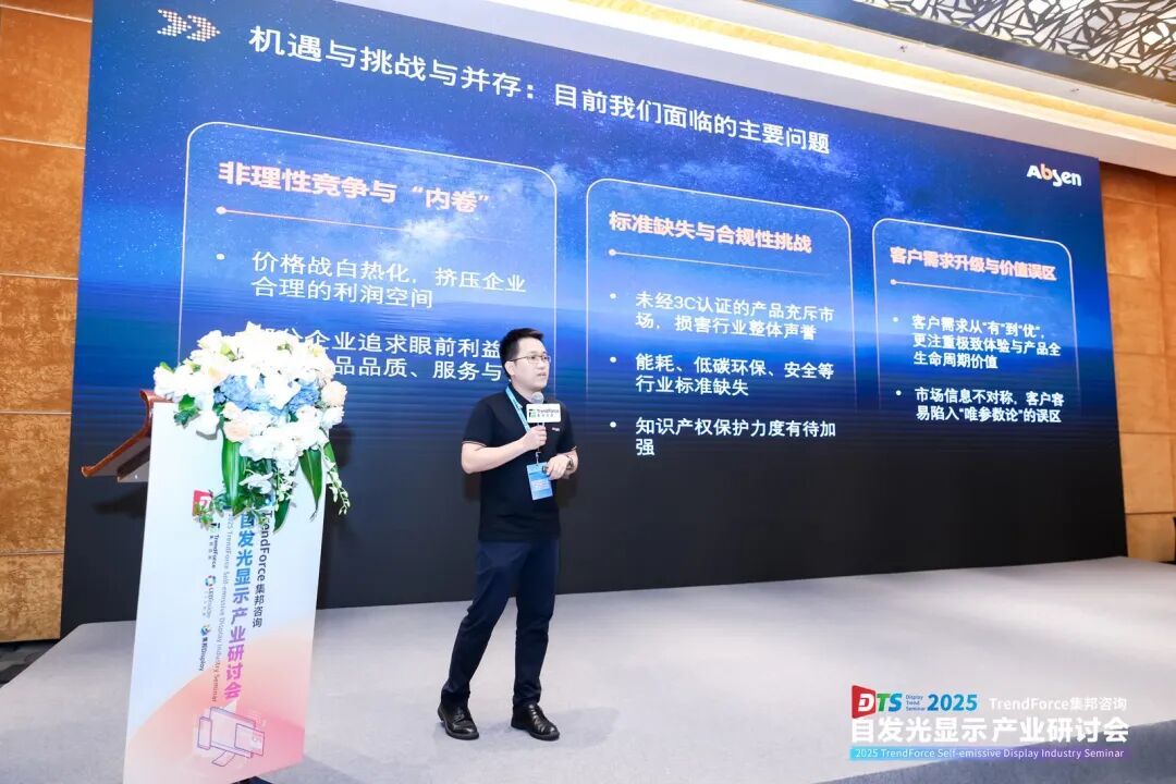 在近日举行的2025 TrendForce集邦咨询自发光显示产业研讨会上,艾比森副总裁、产品研发体系负责人邓汉卿发表了题为“LED行业发展倡议:行业合规高质量发展与满足客户需求管理的技术领先”的演讲,呼吁LED显示行业理性竞争、减少“内卷”。