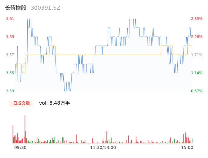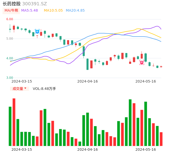 05月16日,长药控股收报3.58,股价涨幅1.99%,成交金额3033.28万元,换手率2.42%。
