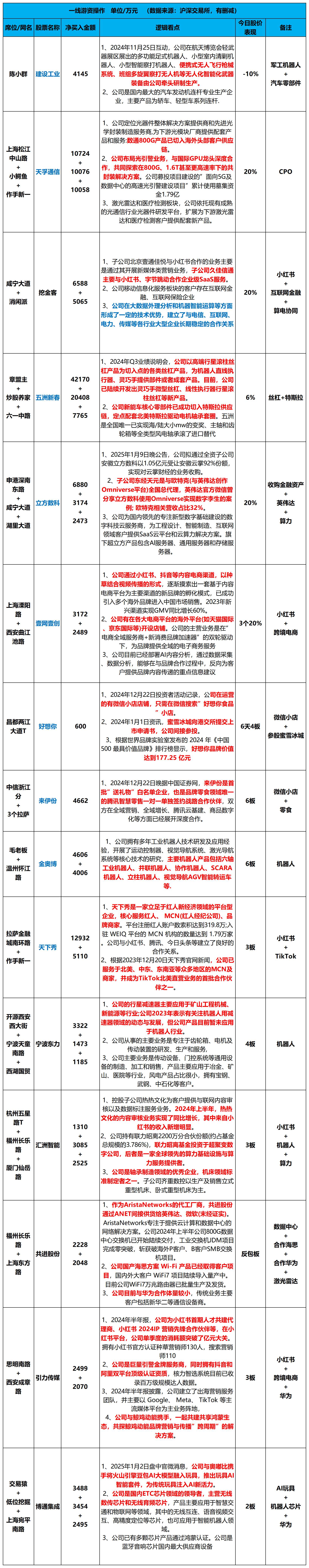 今天的龙虎榜终于见到大手笔了。章盟主4亿,炒股养家2亿大买五洲新春挨套。作手新一、小鳄鱼各买1亿天孚通信。现在题材混沌期,游资大佬也是八仙过海各显神通,有做机器人加强的,有挖掘低位超跌价值股的。每个人解题的思路天差地别,答案只有市场知道。我更倾向于低位。