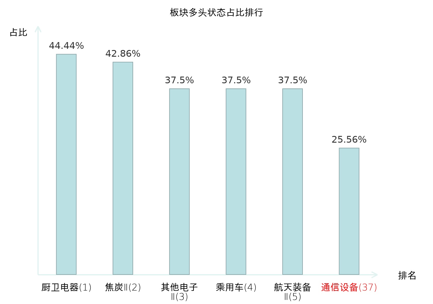 全市场所有行业板块中主力多头状态占比排名中,厨卫电器板块位居第一。元件板块名次提升最快,较昨日上升69位。