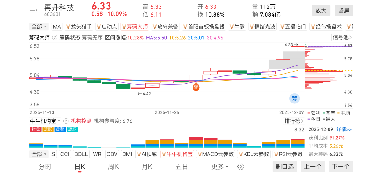 2)20251209-再升科技-603601-【筹码大师】和【牛牛机构宝】-近期出现弹信号且底部量柱由绿转红