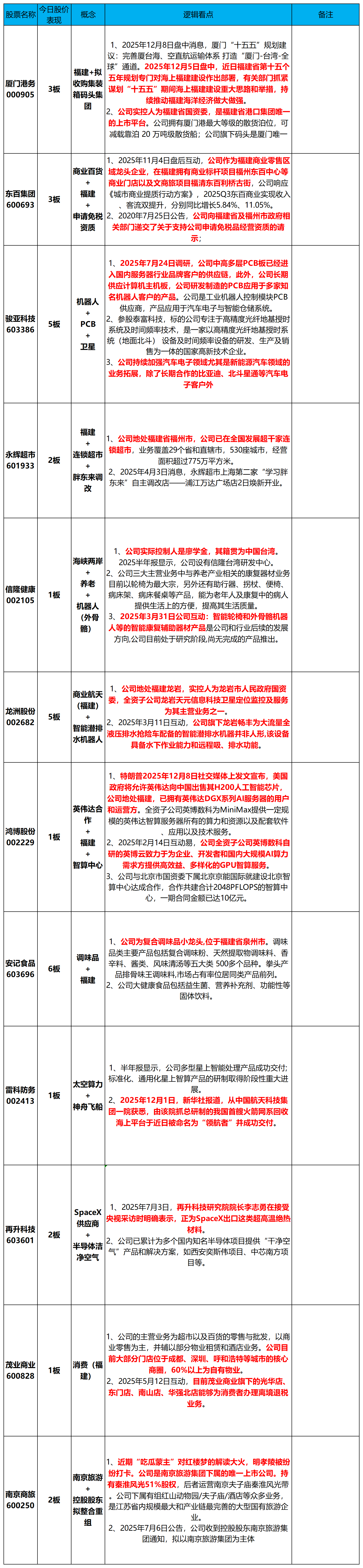 安记食品603696、骏亚科技603386、龙洲股份002682、东百集团600693、南京商旅600250、