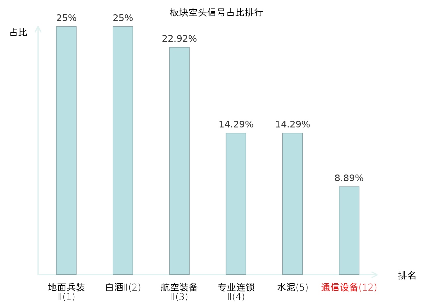 全市场所有行业板块中主力空头信号占比排名中,地面兵装Ⅱ板块位居第一。航空装备Ⅱ板块名次提升最快,较昨日上升115位。