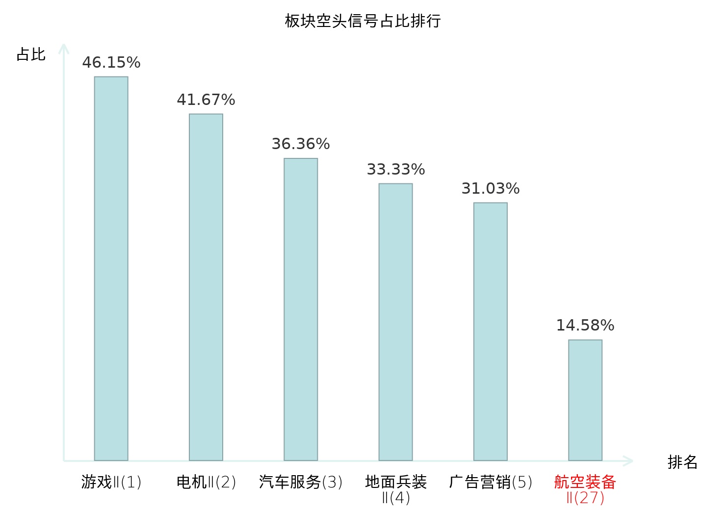全市场所有行业板块中主力空头信号占比排名中,游戏Ⅱ板块位居第一。光学光电子板块名次提升最快,较昨日上升103位。