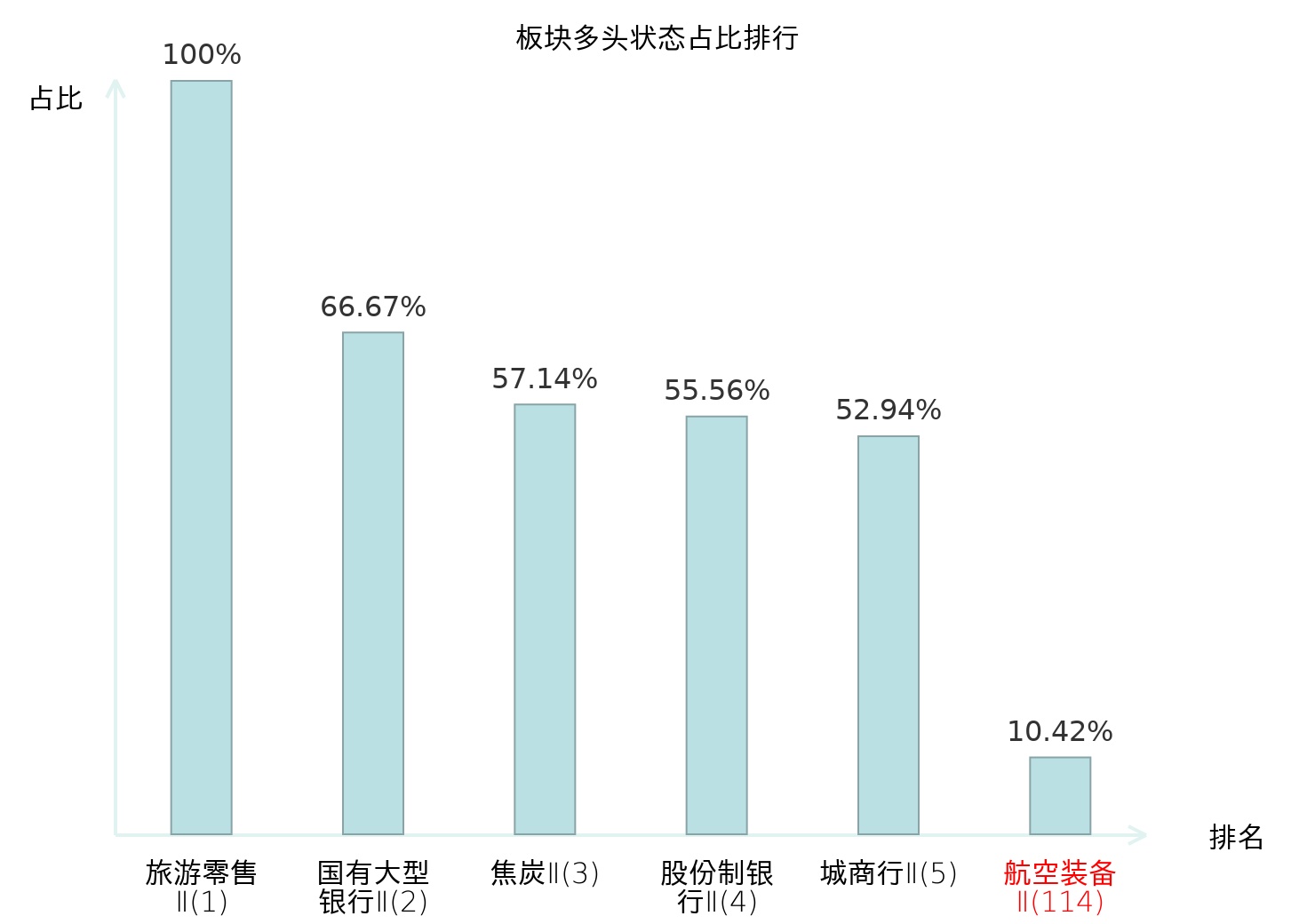 全市场所有行业板块中主力多头状态占比排名中,旅游零售Ⅱ板块位居第一。其他家电Ⅱ板块名次提升最快,较昨日上升101位。