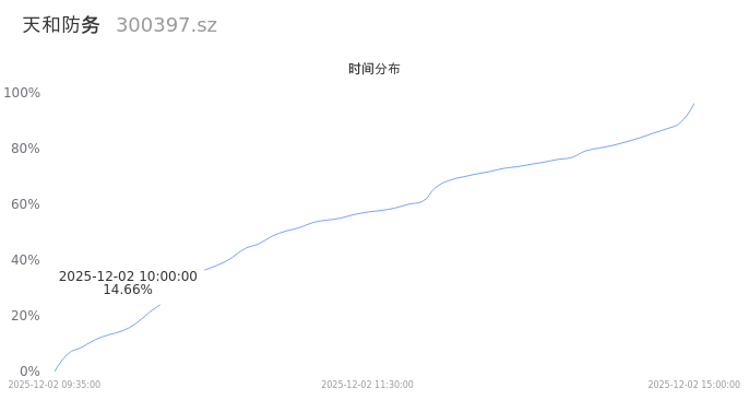 300397天和防务2025年12月02日成交57.84万手,成交金额8.23亿,相较昨日放量18.13万手,换手率14.26%,成交活跃。
