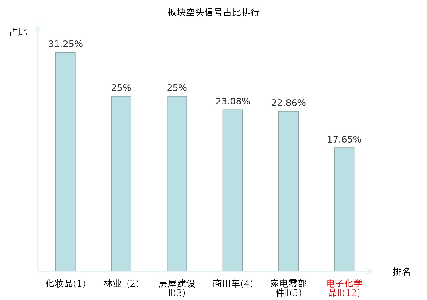 从主力宝信号数据分析,飞凯材料所属的电子化学品Ⅱ板块中共6只股票发出主力空头信号,主力空头信号占比在全行业中排名第12位,较昨日上升84位。排名越高说明主力当日卖出意愿越强。全市场所有行业板块中主力空头信号占比排名中,化妆品板块位居第一;房屋建设Ⅱ板块名次提升最快,较昨日上升113位。这些变动揭示了不同行业间主力资金偏好的变化,有助于投资者理解当前市场的动态和趋势。