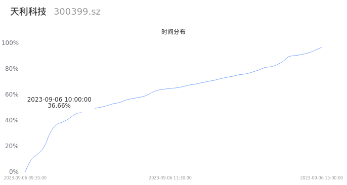 300399天利科技2023年09月06日成交7.94万手,成交金额1.07亿元,相较昨日放量684手,换手率4.10%,成交清淡。