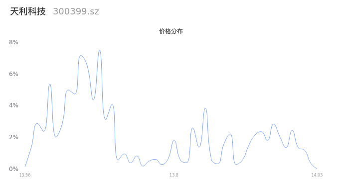 然后我们来看下当日成交的价格分布。将今天股票的最低价与最高价之差形成的价格区间进行切片,并画直方图进行分析,观察成交量在价格区间的分布情况。可以发现,当日的成交分布呈现左偏峰分布,这说明,该股票大部分成交集中在中位数以下,说明交易重心下降,近期可能会存在短线下跌风险。